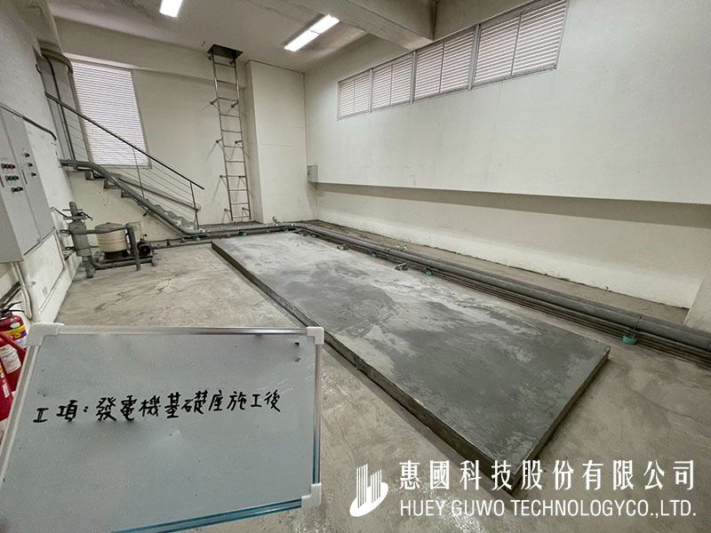 於電機機房內進行基礎平台澆置,為吊裝定位作準備。