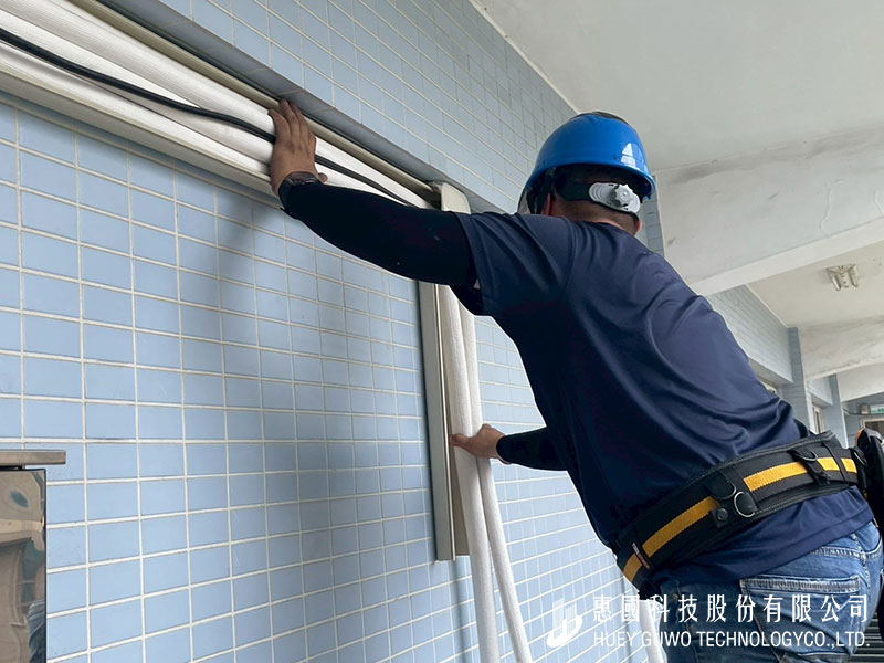 接著進行冷媒管線與電力管線的配置,冷媒管都有做完整包覆與固定,避免日後因震動或老化造成破損;穿牆的位置也都有妥善處理,確保防水、防塵不受影響。