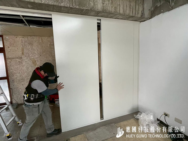 此階段安裝的是 5cm 金屬庫板隔間牆,具備耐燃、隔熱、耐用、不易變形等特性,非常適合用於資訊機房的分區環境。
